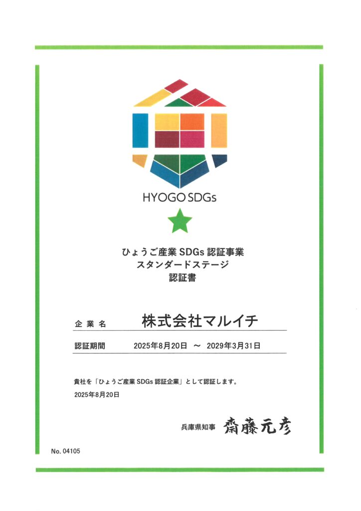 ・㈱マルイチは2025年8月20日から「ひょうご産業SDGs認証企業」としてに登録されました。
